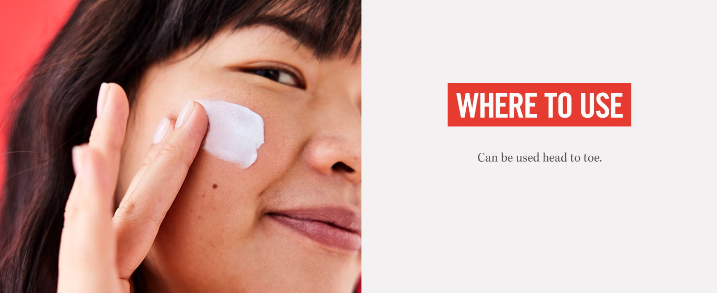 - Fast absorbing, rich hydrating cream formula designed for face + body